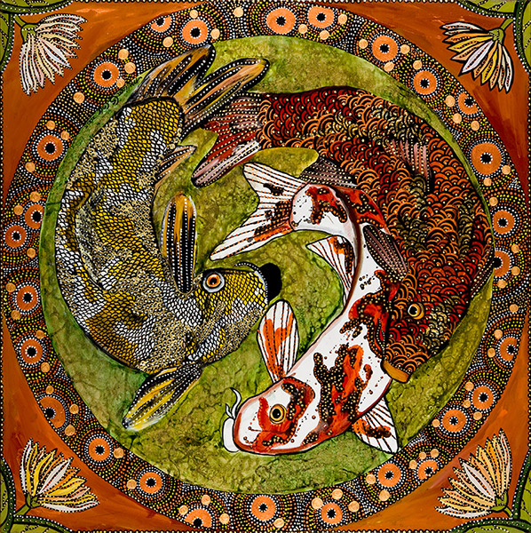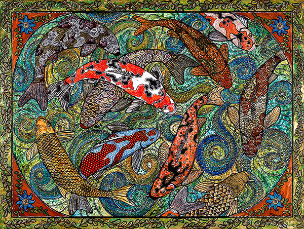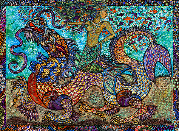 Melissa finds inspiration for her paintings as she travels the planet diving with her marine photographer husband Brandon. Her work is strongly influenced by ethnic designs which she sees in her travels abroad. Her heavily textured and patterned paintings can be found in galleries from Alaska to Key West. Visit her website at http://www.melissacole.com/